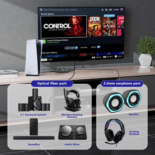 HBAVLINK Gaming HDMI Adapter for Playstation 5, Compatible with Astro A50, A40 MixAmp, Turtle Beach, HyperX Gaming Headsets