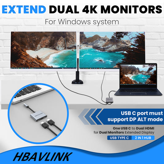 USB Dual Monitor Adapter - 4K 60Hz, Windows/macOS/Android Compatible
